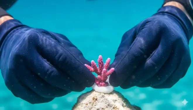 - Trasplante al arrecife : Una vez que los corales alcanzan un tamaño suficiente, los buceadores voluntarios los transportan y los fijan en áreas degradadas del arrecife usando resinas epoxi especiales.